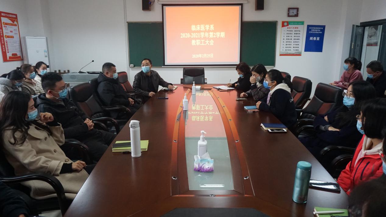 二、由王主任通报2021年临床医学系寒假期间进行的一些主要工作。寒假期间公司校内精品开放课程一直在有条不紊地进行,公司附属医院建设也取得初步进展,临床医学专业1.5+1.5院校合作基本确定,临床医学专业申报工作等都在逐步推进。