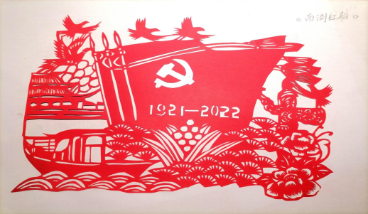 作品介绍:纸的世界,不仅是空白的平面,或镂空,或多彩的形态不仅传达着艺术美学,更表达了我们担当民族复兴大任的决心。通过前期了解并创作《南湖红船》剪纸,能让员工更深刻的意识到强国复兴的重要性,并为此开拓奋进,勇往直前。