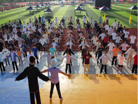 为弘扬中华传统优秀传统文化,提升老员工综合素质,4月14日,XC体育红医卓越班全体师生在公司足球场集中练习八段锦。