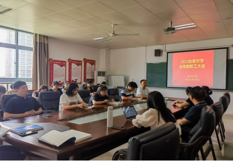 2023年8月30日上午10点,公司在1号实训楼605会议室召开2023年秋季学期开学全体教职工大会。会议由公司党委副书记孙志强主持。