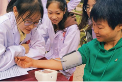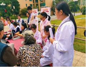 此次活动以悬挂条幅、放置宣传展架、发放科普手册等方式为居民普及高血压健康知识、常见中老年疾病的危害及其防治措施。各位老师和员工为附近居民免费测量血压和血糖,及时进行初步评估,降低因未及时治疗而引发并发症的风险。