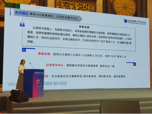 在决赛现场,参赛团队展示了虚拟现实技术在医学教学中的创新应用,评委针对该作品的应用价值、技术呈现方式等进行提问,选手现场答辩,现场气氛火爆。