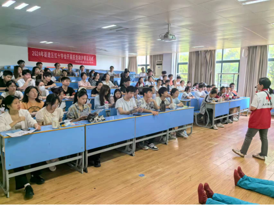比赛采取理论知识考试和现场操作考核相结合的形式进行,全面检验了参赛选手的综合实力和应急处理能力。在5月18日的赛前培训中,校医院特邀公司红十字会二级团队讲师李孟阳、叶梦琪作为主讲,采用“理论+实践”的形式进行。在理论学习环节,老师结合临床,着重强调掌握急救知识的重要性、必要性,作为医学专业的人在急救现场更应第一时间采取正确且有效的应急措施,全力挽救伤者的生命,为下一步的救援赢取宝贵的时间。在实践学习环节,专业老师系统地讲解了现场应急救护流程、心肺复苏操作规范、AED的使用、气道异物梗阻、创伤包扎等常见的应急救护知识,手把手讲授心肺复苏、AED操作流程、止血、骨折固定包扎等急救技能,重点模拟演练心肺复苏和AED操作流程。参赛人员利用业余时间强化训练,确保能够熟练掌握各项急救技能。