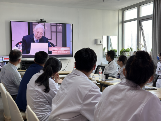 随后与会人员观看了陈灏珠院士诞辰100周年纪念视频,深情重温了陈灏珠院士为国、为民做出的卓越贡献。四病区主治医师朱虹岷博士图文并茂地讲解了“急诊心肌梗死”相关专业知识并带领同学们前往病房进行急性心肌梗死教学查房,并就查房所见所思与同学们进行了深度交流,加深了同学们对这一疾病的了解和认知,也让同学们认识到虽然医学科技进步飞快,但严谨细致的问诊、规范的体格检查仍是一位优秀医者的基本功,其中蕴含的缜密临床思维更是核心竞争力。