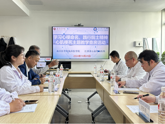 2024年是我国心血管病学泰斗陈灏珠院士诞辰100周年,为进一步深化院校融合,创新院士精神学习有效载体,贯彻“早临床、多临床、反复临床”的临床医学人才培养规律,10月25日下午,XC体育拔尖人才培养基地与江西省心血管病医院四病区联合开展了“学习‘心梗’命名,践行院士精神”为主题的心肌梗死教学查房活动。XC体育副经理朱鹏云、江西省心血管病医院四病区副主任蔡新勇等院校双方相关带教教师、住培生、本科生代表约30人参加。