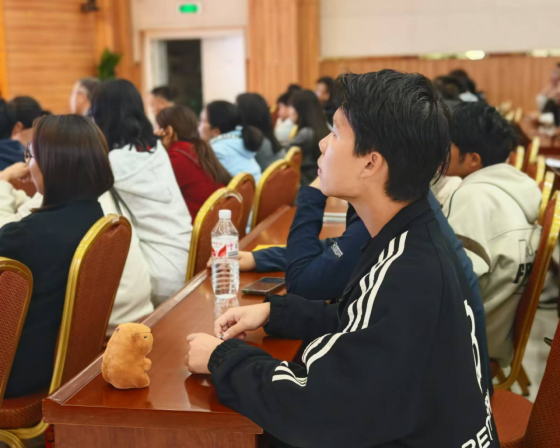 同时,陈文艳主任巧妙设题,以她从医之路的不同故事引出,这些故事中有经历“医闹”的困扰、有感慨现代医学的局限及收获患者和其家属肯定后满满的职业幸福感等,在不同的故事后三次以“你愿意当医生吗?”为主线,让现场同学举手,测试同学们的反应,随着举手的越来越多,以至分享结束,几近全员举手。举手数量变动反映的是同学们学医信念的再一次笃定,“学医没有你想象的那么好,也没有你想象的那么差”、“欲戴其冠,必承其重”,她鲜活的从医故事深度诠释了医生职业光鲜亮丽背后的真相是持续地奋斗和不断地精进,加深了同学们对临床医学专业的认知和对临床医生职业的理解。
