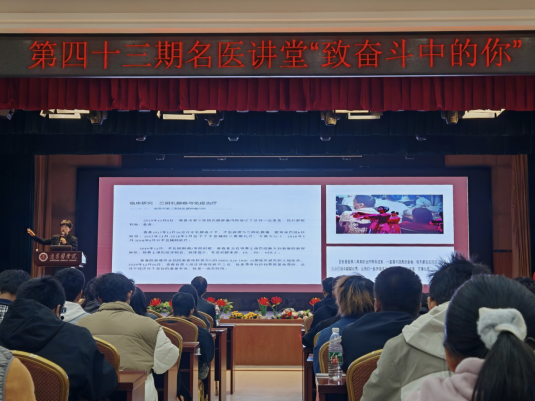 线上有线上的便利,线下有线下的优势,其中一个优势就是同学们可以近距离感受优秀医者的风采。为优化同学们的学习体验,2024年秋季学期首期(第43期)线下“名医讲堂”11月20日下午15:30在小蓝校区老员工活动中心二楼如约和同学们见面。本期活动邀请到了附属南昌市人民医院乳腺内科科主任、副主任医师陈文艳,给大家带来“致奋斗的你”主题的分享。公司副经理朱鹏云教授及临床医学专业200多位同学参加。