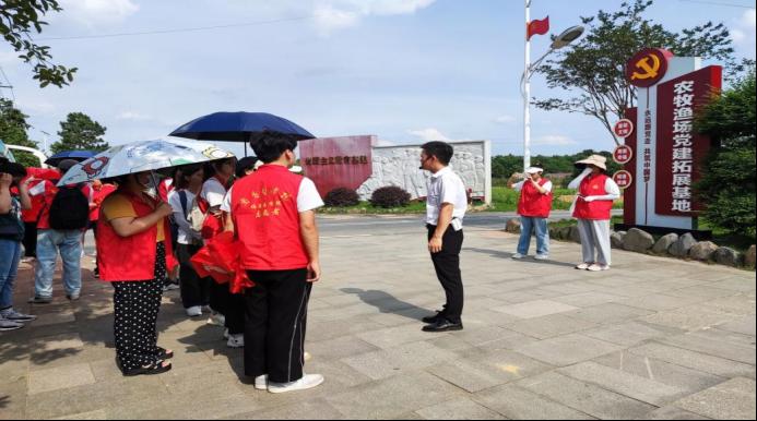 农牧渔场爱国主义教育基地是上世纪六、七十年代独立师营部和机炮连连部所在地,位于奉新县农牧渔良种场园艺一分场三组,有着光荣历史和优良传统。志愿者们跟随讲解员的脚步参观了重建后的原部队农场原址风貌,在展示馆内通过四折幕投影技术身临其境学习红色革命历史,了解中国共产党的发展历程,这些知识对志愿者来说,是一次很好的“初心教育”。