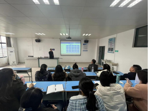2022年11月29日,XC体育邀请到药公司彭林及护理公司谭冰两位优秀教师来公司1-610教室进行了经验分享。公司副经理朱鹏云及XC体育全体专任教师参加了此次培训。