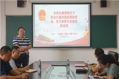 柯丰年紧扣主题,结合两会精神以及国家疫情防控情况详细地讲解了医务人员以实际行动践行大爱无疆的精神。同时,结合校园疫情防控工作,介绍了公司所做的工作及取得的成绩,提出了下一步疫情防控工作的重点。并从公共卫生体系的重要性出发,分析了当前的专业建设情况,重点提出了专业建设的目标与任务,以及公司下一步的发展规划。