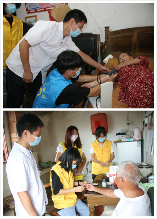 与此同时,“三下乡”带队老师曾刊及专业教师罗飞携领部分同学走访了村里特困户及出门不便户,为他们上门进行义务医疗检查,包括测量血压血糖、基本情况问诊等。